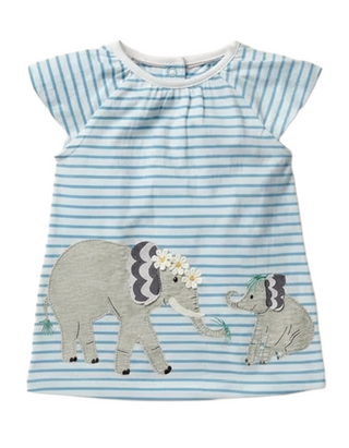 Baby Boden Girl's Breton Elephant Applique Jersey Dress in Blue Mix