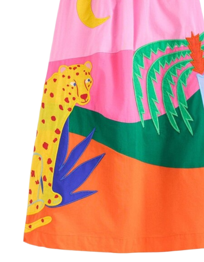 Brighten your little one's day with this charming sleeveless strappy dress, featuring a cheerful appliqué design that celebrates sunshine and joy. The generously cut full skirt encourages endless movement—perfect for twirling, dancing, and active play. Crafted in soft vintage mauve, this piece combines comfort with whimsical style. Ideal for everyday wear or special occasions, it's designed to spark happiness and confidence in young wearers. Note: This is an imperfect item, offering exceptional value without compromising on charm or wearability.