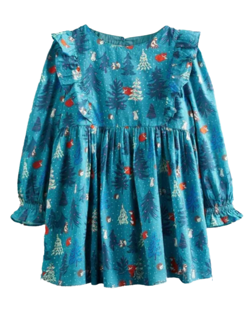 The Mini Boden Girls' Frill Tiered Woven Dress in Green Forest Toile combines charming design with woven fabric quality. Its tiered frill construction enhances movement and adds a delicate texture, while the print offers a whimsical yet sophisticated look. This dress is ideal for both everyday wear and special occasions, providing comfort alongside a unique style that reflects careful craftsmanship.