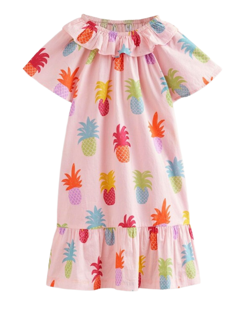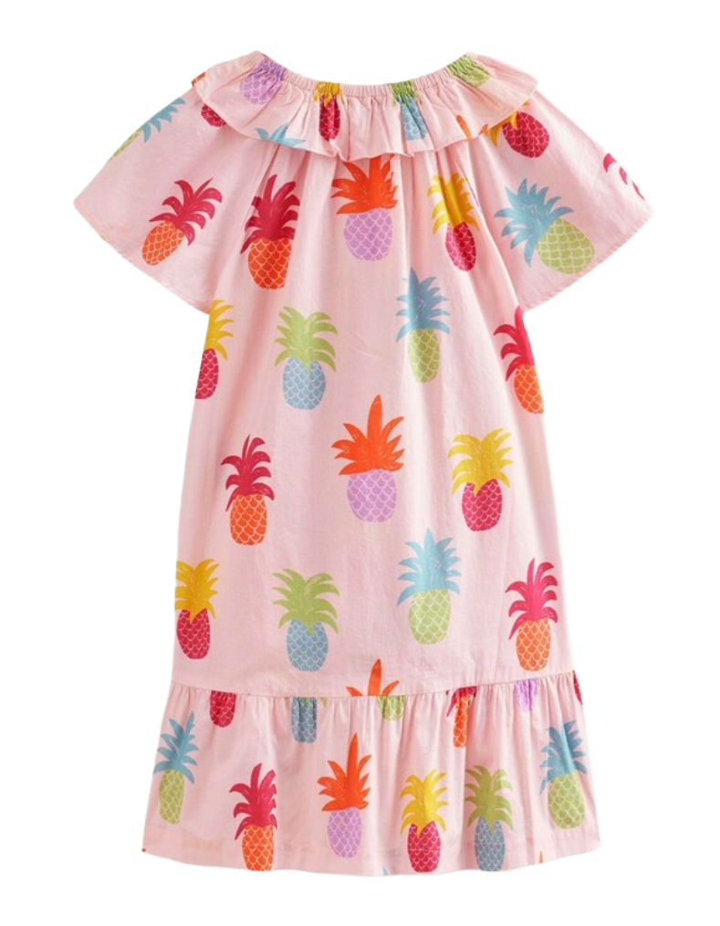 Crafted from lightweight cotton, this Mini Boden girls' holiday dress offers a comfortable, breathable fit ideal for warm days. Its relaxed, swishy silhouette allows freedom of movement, making it perfect for lively little ones. The playful pink pineapple print adds a cheerful, summery touch that children will enjoy wearing as much as the fun moments that come with holiday adventures.
