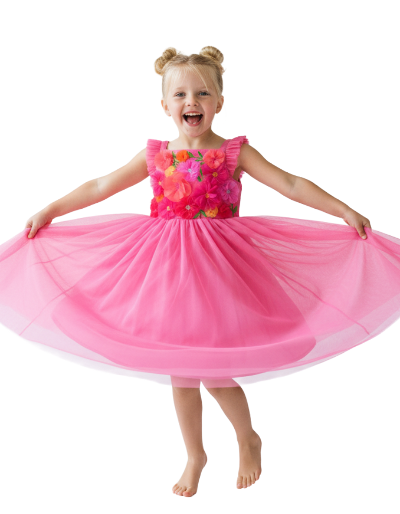 This Mini Boden Girls' Floral Applique Tulle Dress in Green features a full gathered skirt adorned with delicate appliqué flowers that move gracefully. Designed with a flattering square neckline and flutter straps, it ensures a charming silhouette, while the shirred back panel offers a comfortable fit. Practical and stylish, this dress is machine washable for easy care.