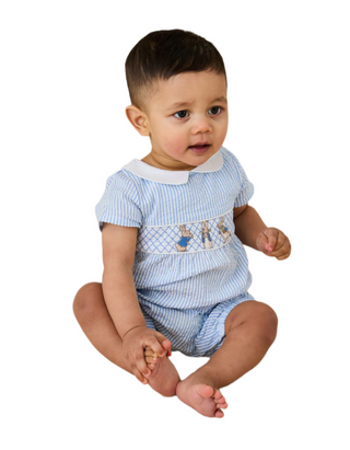 JoJo Maman Bebe Embroidered Smock Romper in Blue
