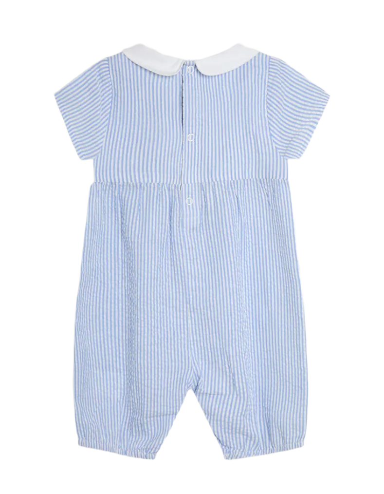 JoJo Maman Bebe Embroidered Smock Romper in Blue