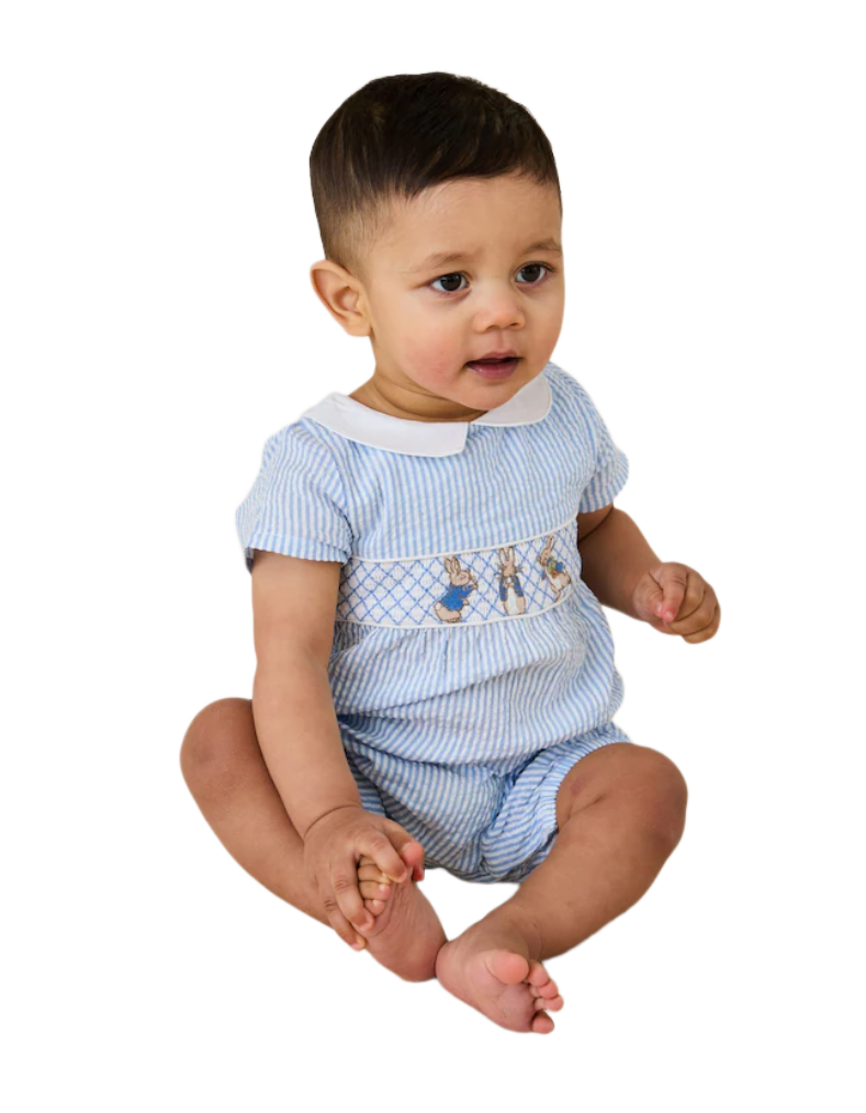 Introduce your little one to timeless charm with this enchanting 3-piece set featuring the beloved Flopsy Bunny from Beatrix Potter's Peter Rabbit™ collection. The cream ruffle-sleeve blouse showcases delicate embroidered detailing, paired with coordinating shorts and a matching headband for a complete, polished look. Designed with practical back buttons for effortless dressing, this set combines comfort with character—ideal for spring adventures and special occasions alike.