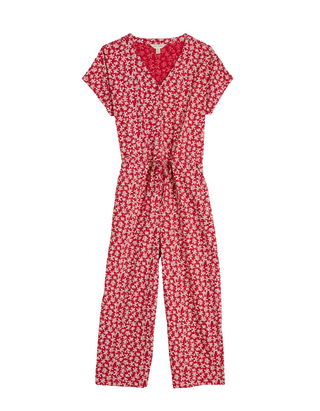 Women's Cotton Jersey Short Sleeve Wide Leg Rose Trails Jumpsuits in Red Saltwater Ditsy Scarlet