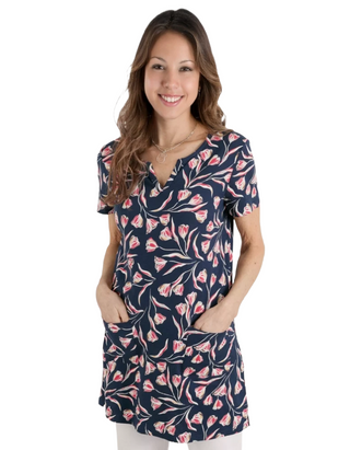 Women's Artist's Palette V-neck Tunic in Navy Tile Jam (Imperfect)