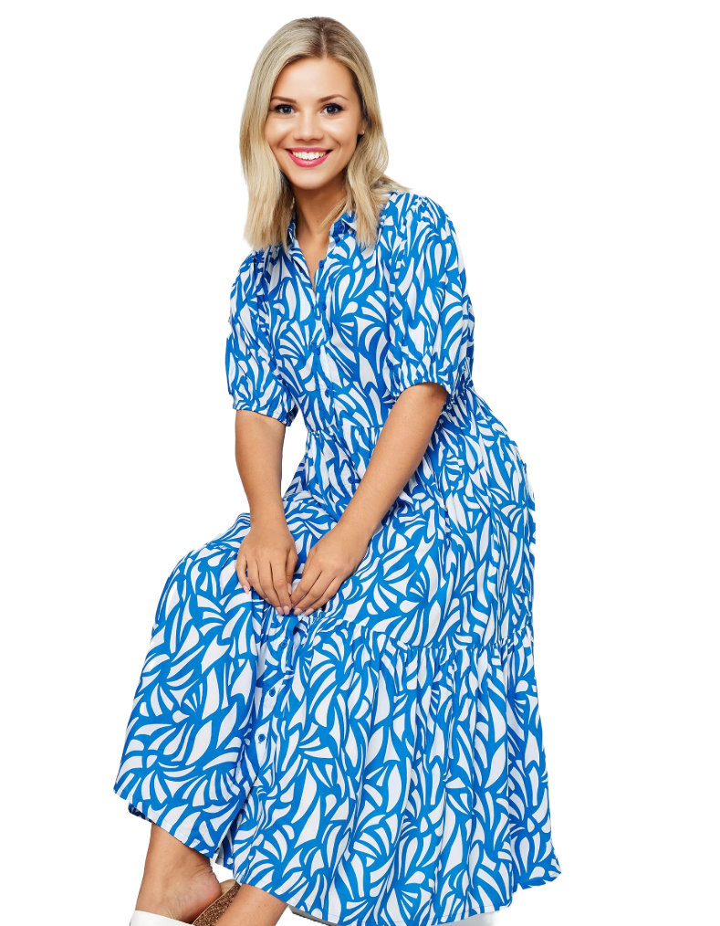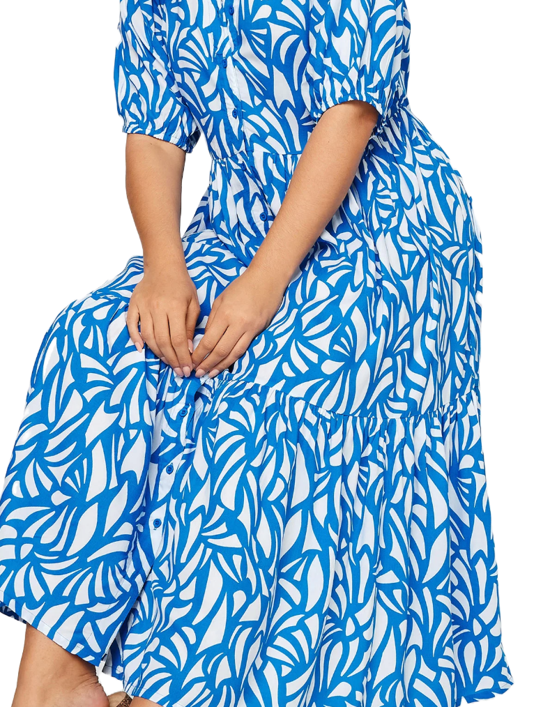 This women's shirt dress is made with soft and breathable viscose material, providing a comfortable and stylish option for any occasion. The abstract print adds a unique touch to this classic design. Imperfections add character and uniqueness to this one-of-a-kind piece.