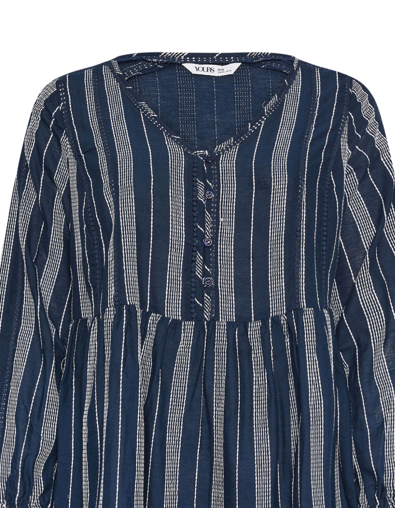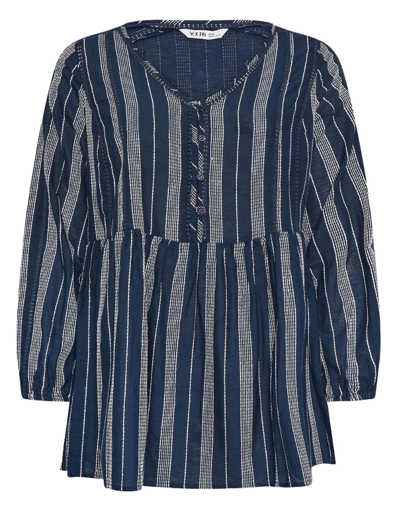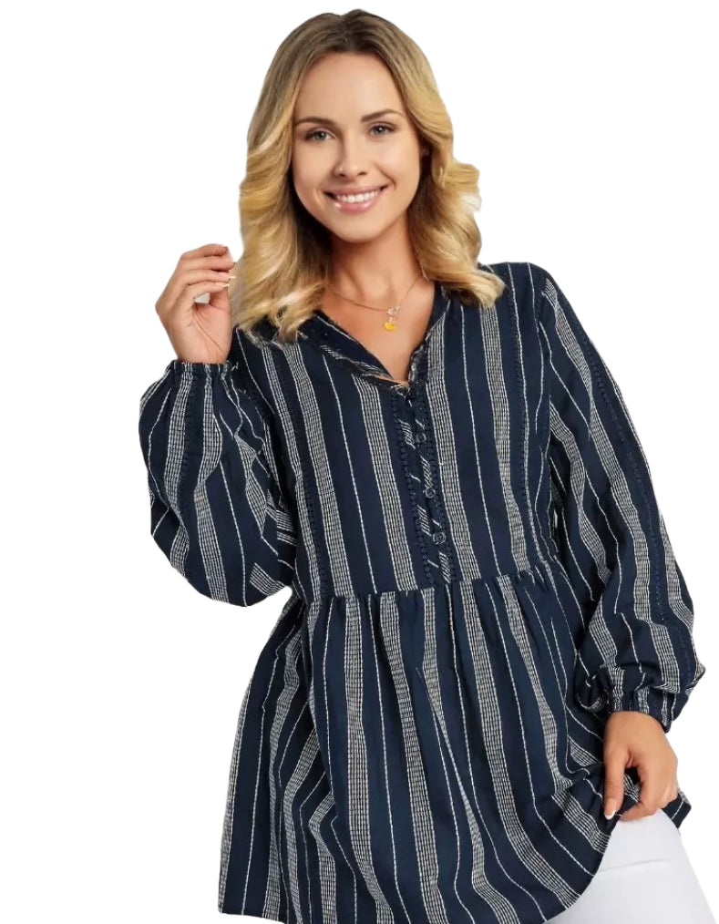 Upgrade your wardrobe with this must-have blouse. Made from a comfortable woven fabric, it features a stylish contrast stitch design and elegant crochet detail. The long balloon sleeves add a chic touch to this versatile piece. Perfect for the holiday season when paired with cropped trousers and sandals.