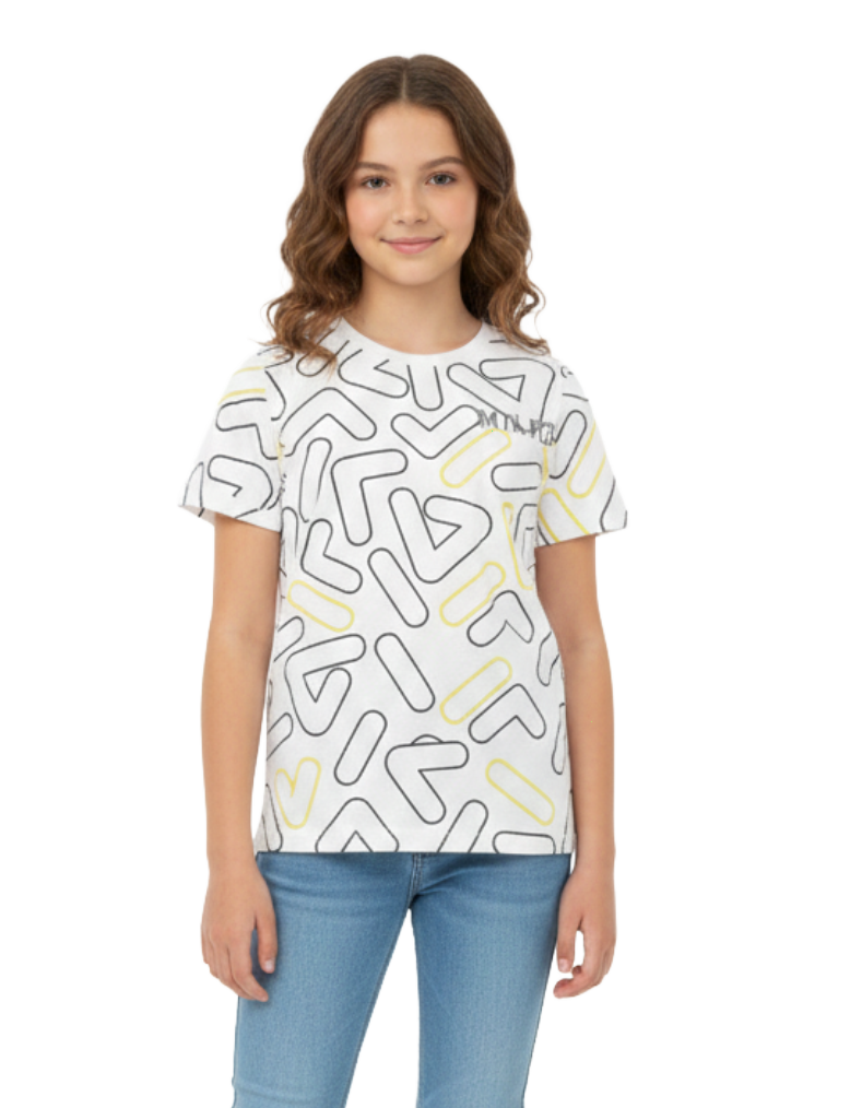 FILA Girl's Short Sleeve Monogram Algorithm T-shirt in Ivory Mix