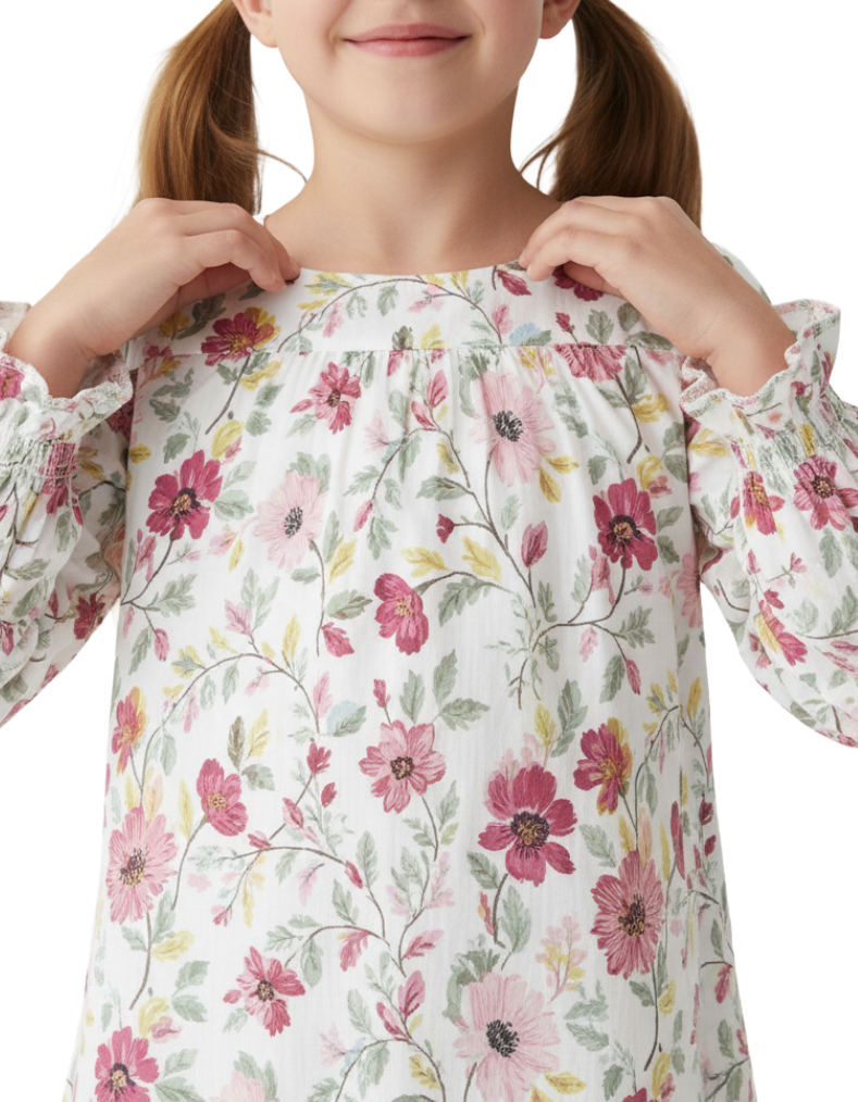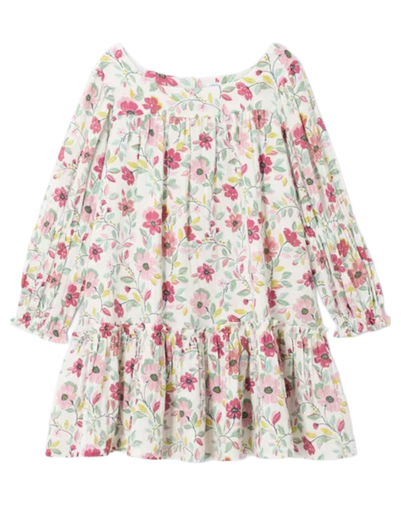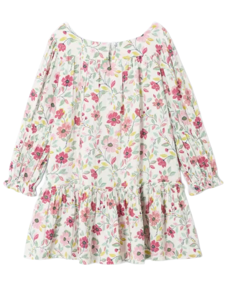 John Lewis Girls' Printed Floral Puff Sleeve Dress in White Mix