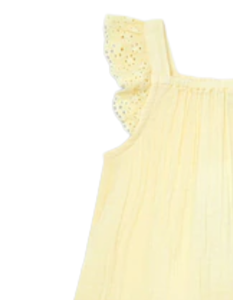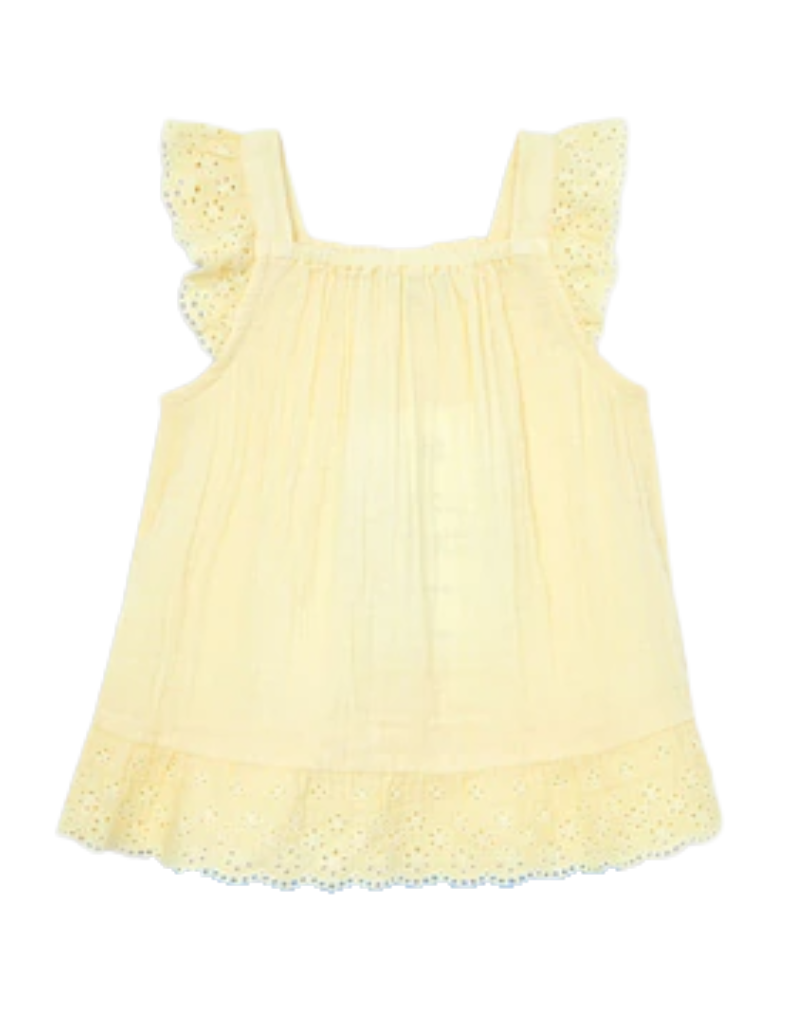 This JoJo Maman Girls' top in butter yellow features a classic square neck for easy wear. Its plain design is enhanced with delicate broderie trim detailing, adding subtle charm. The elasticated neckline ensures a comfortable, tailored fit, making it ideal for both playtime and special occasions. Crafted with attention to detail, this dress combines practicality with refined style.