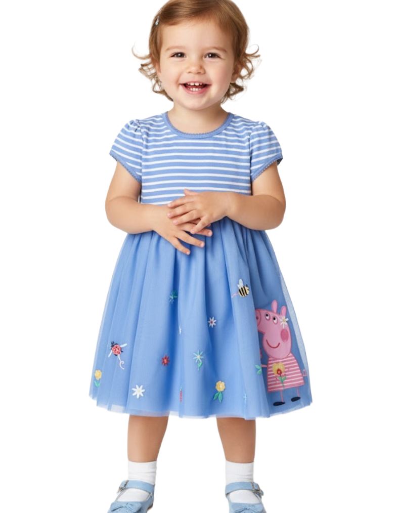 JOJO Mamn Girls’ Peppa Pig Tulle Party Dress in Cornflower (Imperfect)