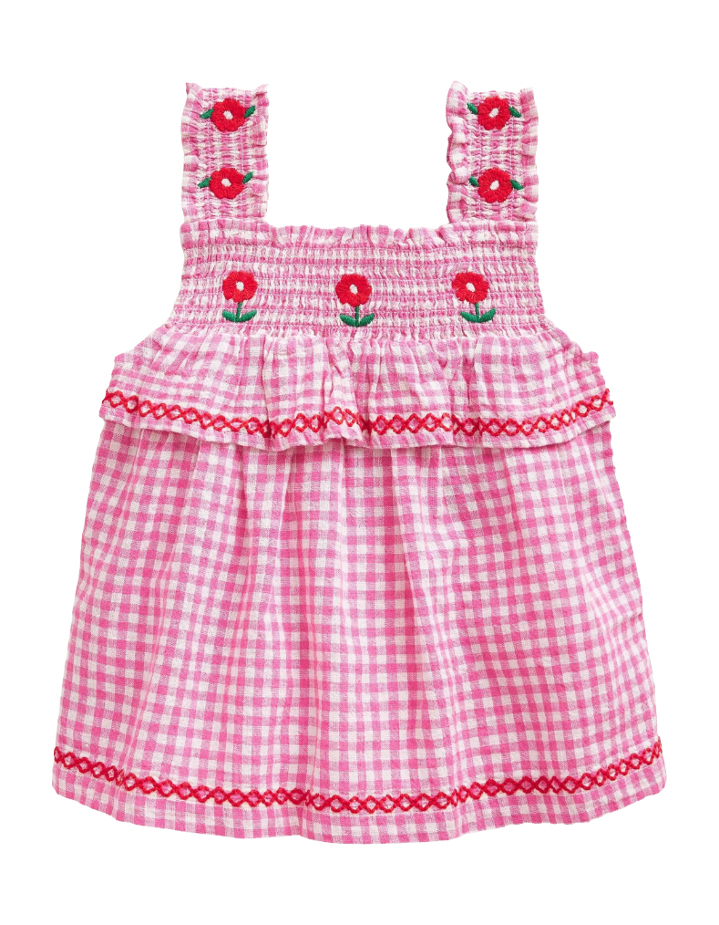 Crafted from soft cotton, this Mini Boden top features delicate all-over dobby spots, intricate smocking, and charming embroidery. Its lightweight fabric and thoughtful detailing provide comfortable wear while adding a refined touch to children’s wardrobes, perfect for making any day joyful and stylish.