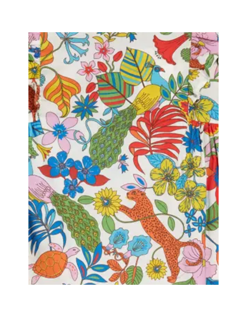 This Mini Boden girls' dress features delicate frilly ruffled sleeves that add a charming detail to its vibrant floral cotton fabric. Crafted for comfort and style, the breathable material ensures all-day wearability, while the cheerful print brings a playful touch ideal for any occasion. Perfectly designed to combine softness with eye-catching design, it’s a thoughtful choice for a child’s wardrobe.