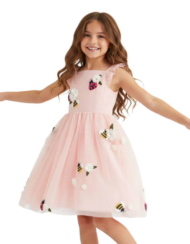 Mini Boden Girls' Flutter Flower Tulle Dress in Pastel Pink