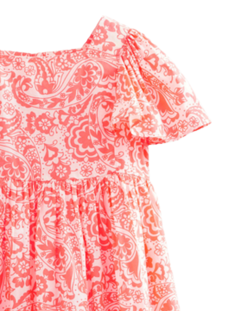 Mini Boden Girls' Paisley Printed Flutter-sleeve Dress in Watermelon Punch