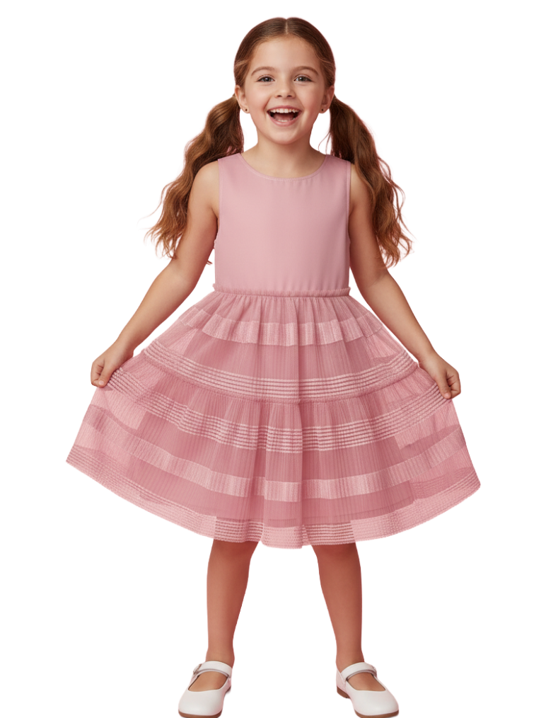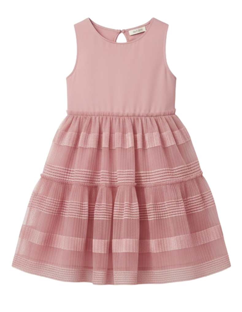 OVS Girl's Chenille Stripe Detail Tulle Skirt Dress in Mauve Pink combines elegance with playful design, making it an ideal choice for celebrations and special occasions. The voluminous tulle skirt creates a flattering silhouette whilst the chenille stripe detailing adds contemporary visual interest. Thoughtfully constructed for comfort, this dress transitions effortlessly from parties to everyday wear, offering young wearers both style and practicality in one versatile piece.