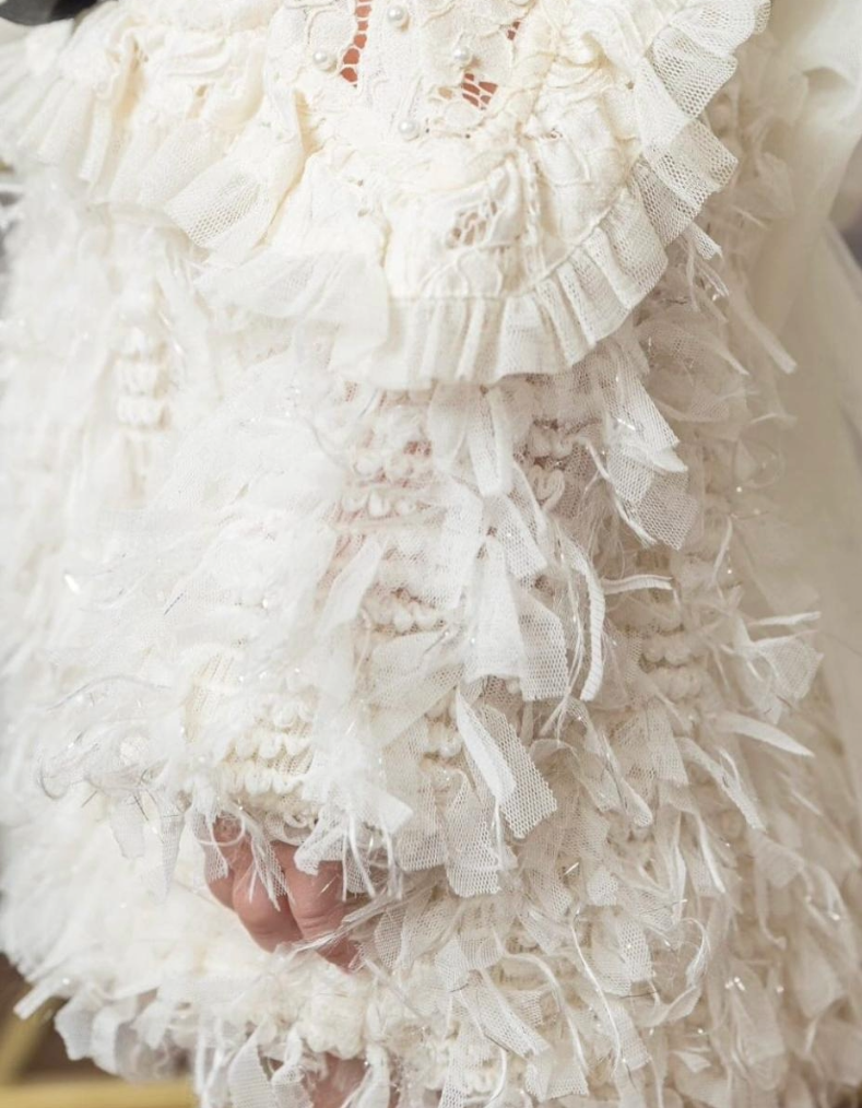 - Ivory shimmer lace fabric