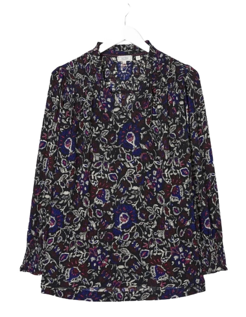 Introducing our eco-friendly tunic, made with LENZING ECOVERO viscose. A sustainable option that doesn't compromise on style - crafted with shirred cuffs, a flattering V neckline, and a beautiful floral print. Perfect for cooler seasons, this longline blouse pairs perfectly with jeans or mid length skirts for added coverage.