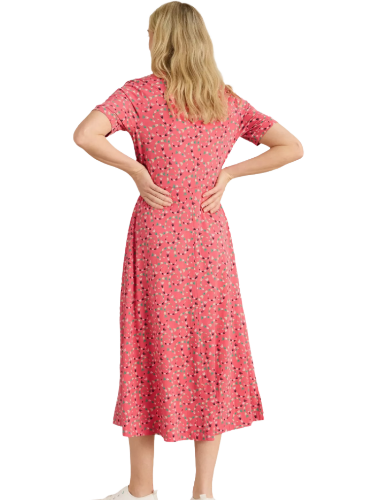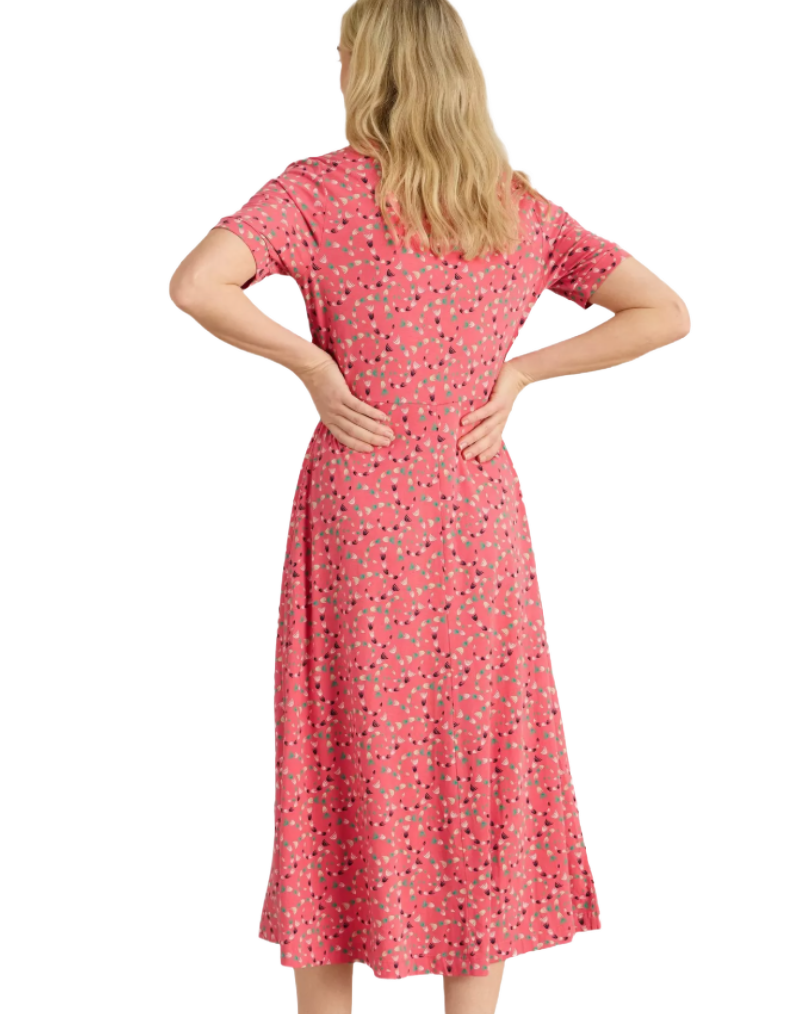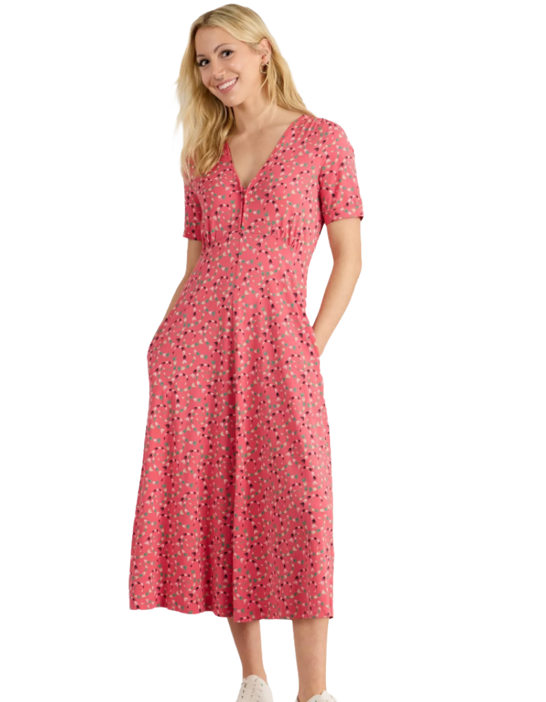 Women's Megan Abstract Printed Jersey Midi Dress in Coral Pink