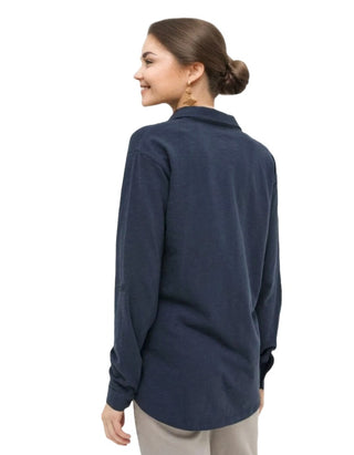Women's Paige Jersey Long Sleeve Polo Shirt In Navy Plain