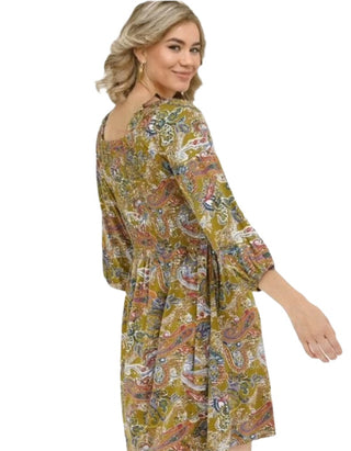 Women's Puff Sleeve Paisley Jersey Dress in Green Floral