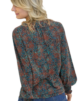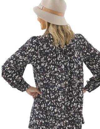 Women's Long Sleeve Printed Tunic in Brown Wild Floral