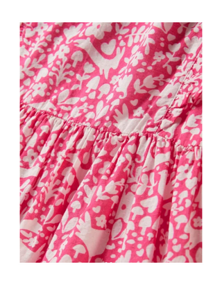 Mini Boden Girls' Frill Tiered Woven Dress in Pink Woodland Toile