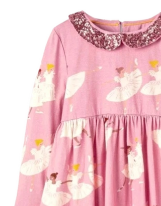 Mini Boden Sequin Collared Ballerina Printed Party Dress in Pink