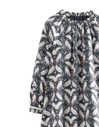 Mini Boden Girls' Gathered Neck Printed Woven Dress- Black Owl