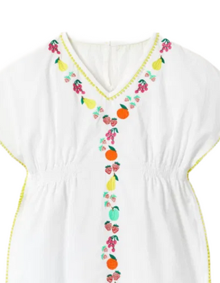 Mini Boden Girls' Fruit Embroidered Kaftan in White