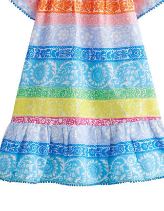 Mini Boden Girl's Zadie Applique Back Dress in Blue Spot Rainbow