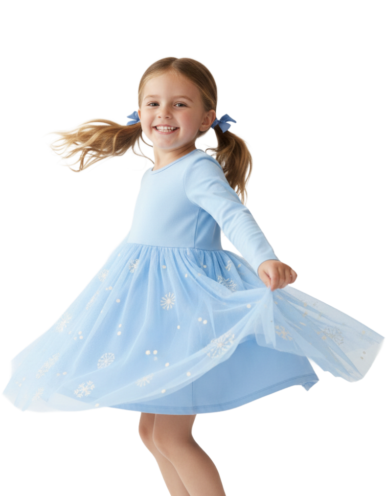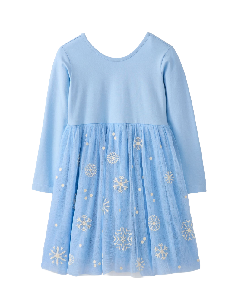 Girl’s Tulle Dress Embroidered Skater Dress in Blue on Snow Flakes (Imperfect)