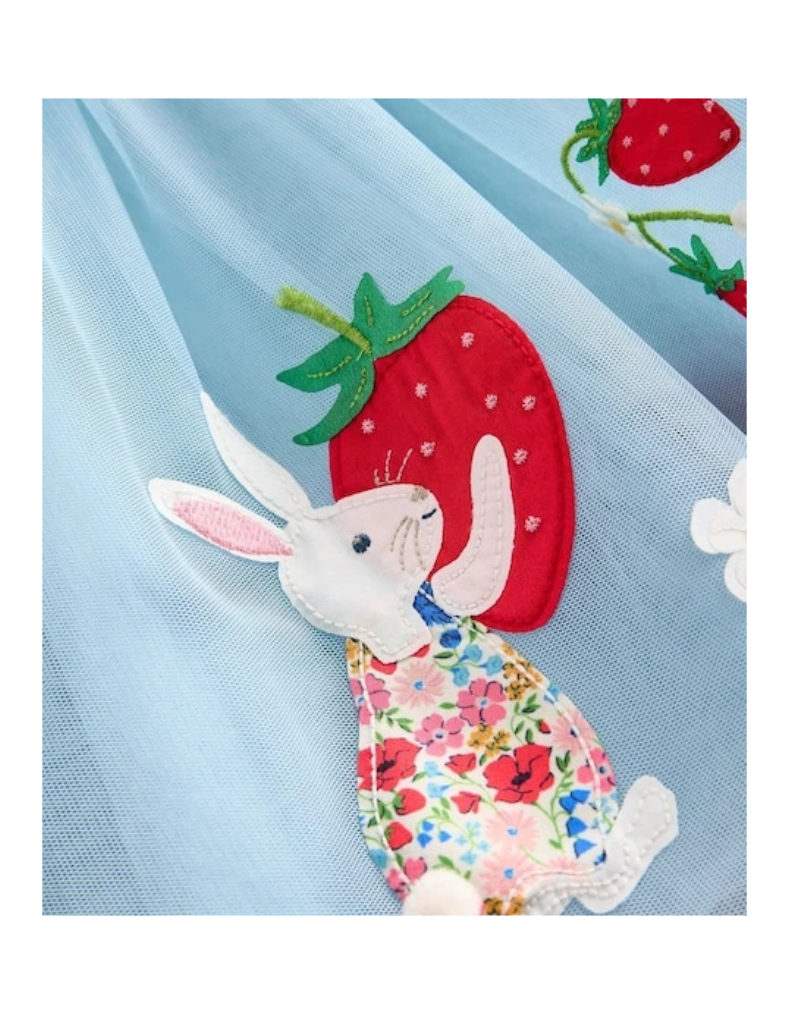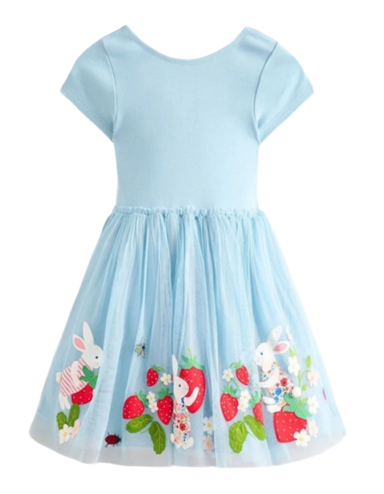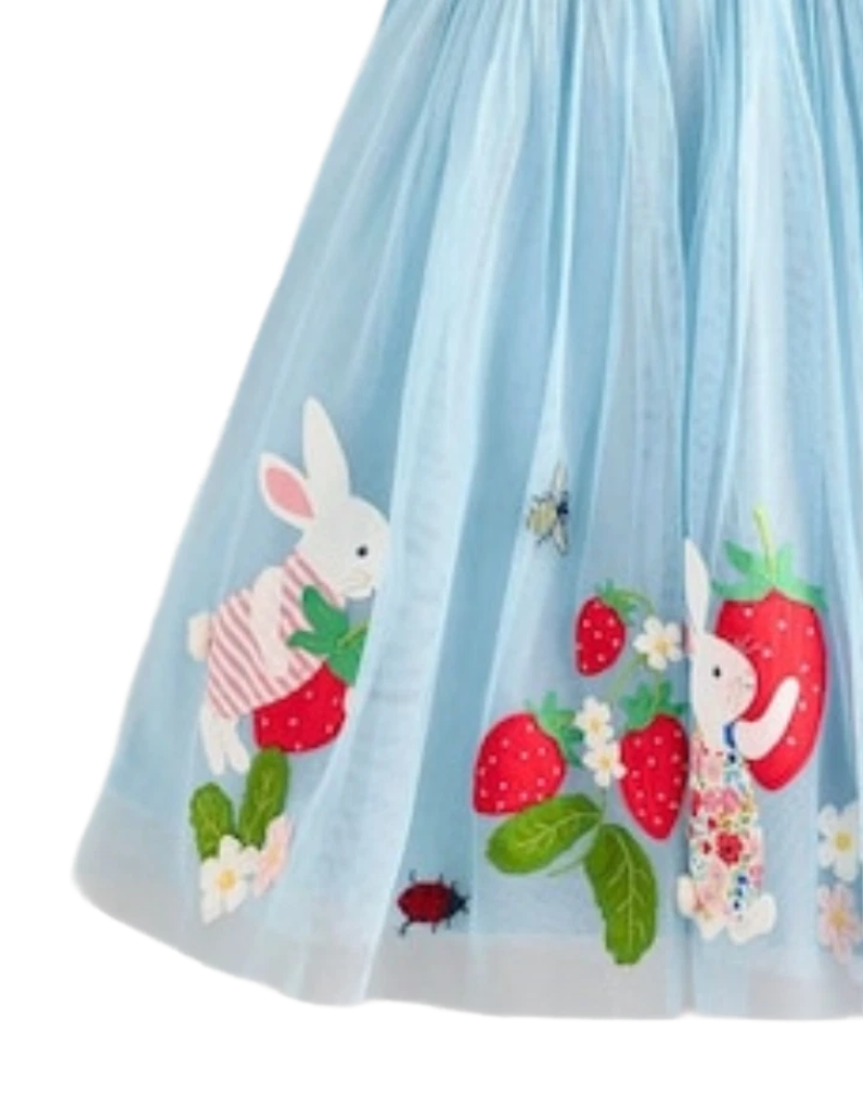 Mini Boden Girl's Katie Bunny Applique Tulle Dress in Blue (Imperfect)