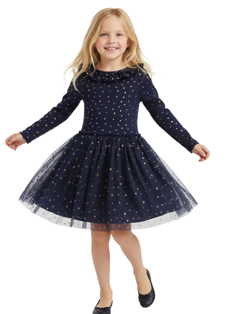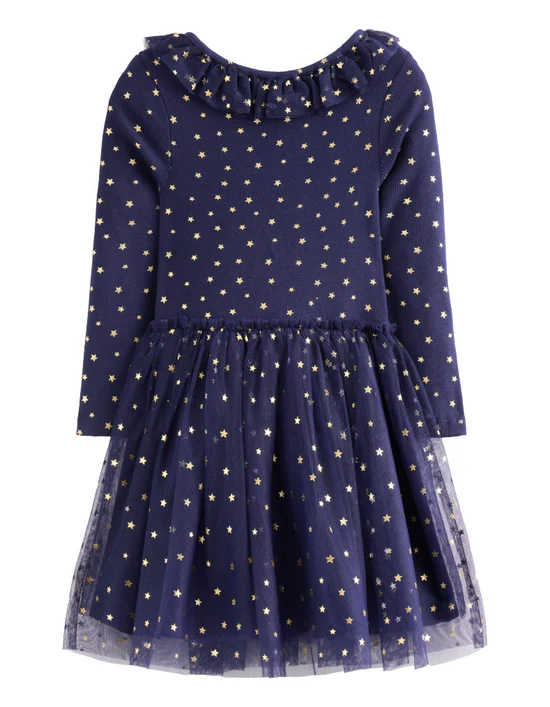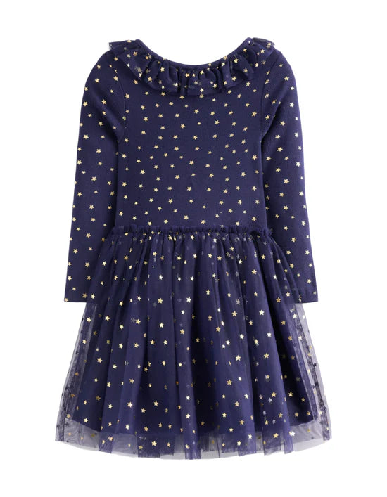 Mini Boden Girls' Rose Twirly Tulle Dress in College Navy Gold Stars (Imperfect)