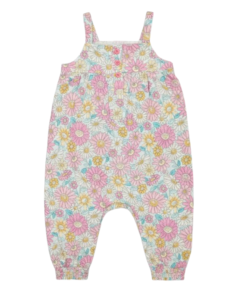 This Jojo Maman Bebe Girls' Printed Jumpsuit features a charming sunflower fields pattern, combining style with comfort. Crafted from soft, breathable fabric, it ensures ease of movement and all-day wearability for active little ones. The jumpsuit’s thoughtful design includes practical fastening details for quick dressing and changing, making it a versatile and delightful addition to any child’s wardrobe. Ideal for warm weather, it offers both a playful look and functional comfort.