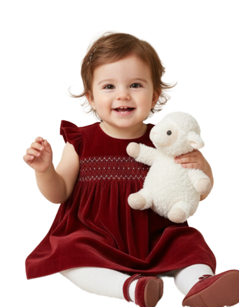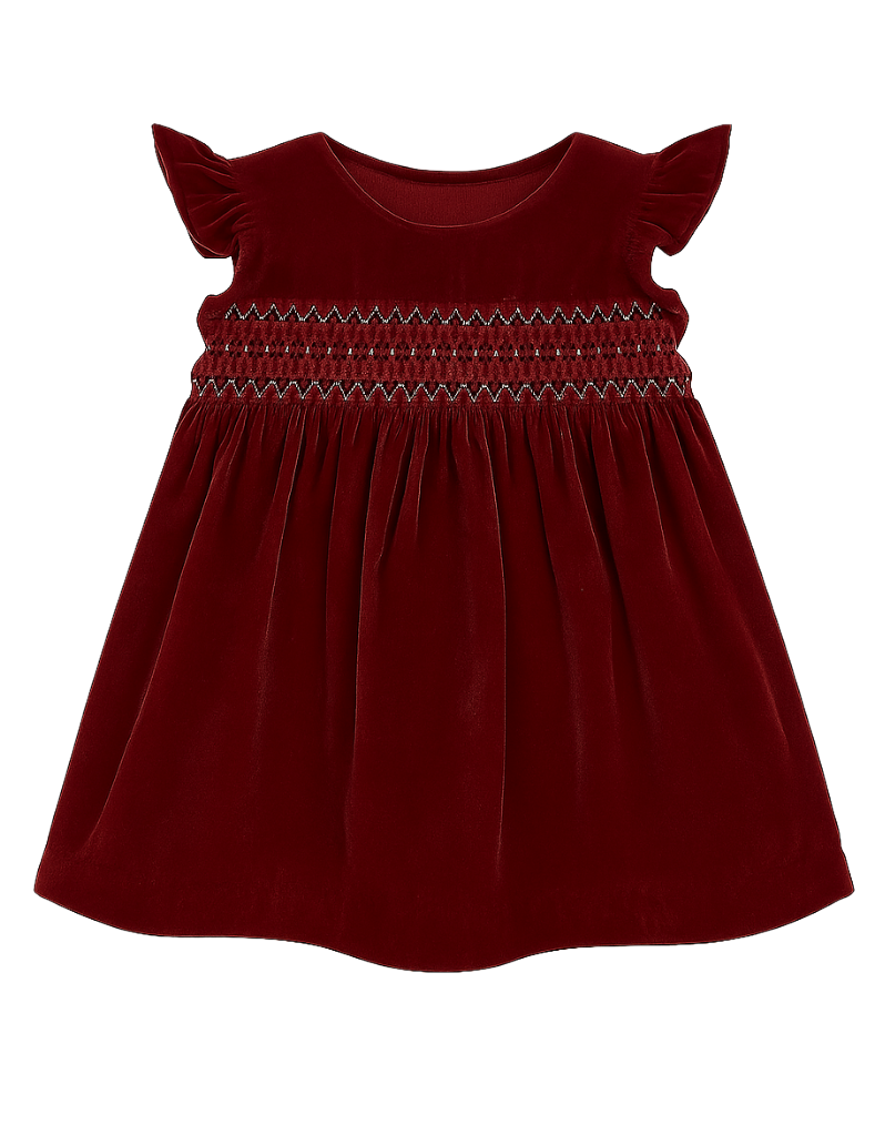 This Burgundy Velvet Smocked Baby Dress by JoJo Maman Bébé combines classic charm with practical design. Crafted from soft velvet with a breathable cotton lining, it features a traditional smocked front and gathers at the waist for a full, elegant silhouette. The button-back closure ensures easy dressing, while the machine-washable fabric offers convenient care. Ideal for keeping your baby comfortable and stylish throughout the day.