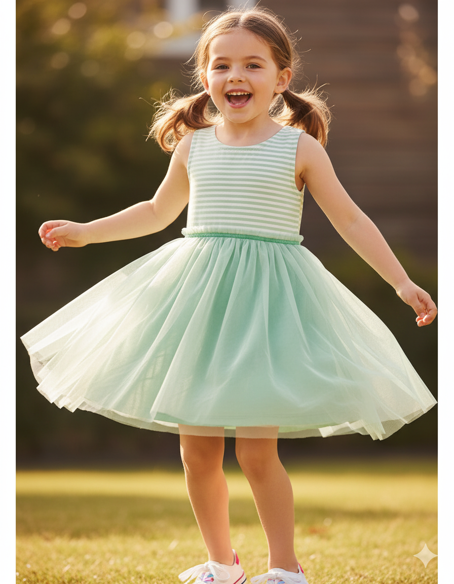 Mini Boden Girls' Jersey Tulle Mix Dress in Pistachio Green