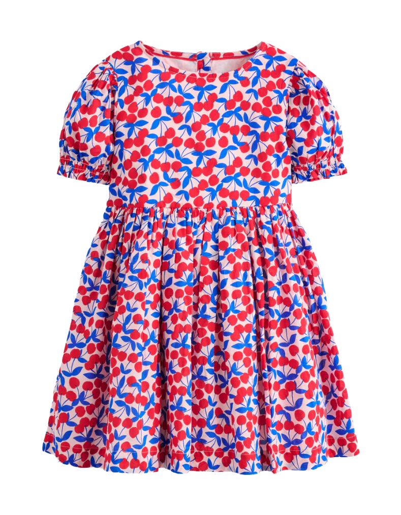 Perfect for special occasions, the Mini Boden Girls' Madeline Woven Dress in Chalk Pink Cherries features charming shirred puff sleeves that add a delicate touch. Designed to fall above the knee, it includes a convenient centre back button opening for easy dressing. Crafted from 100% cotton for both the main fabric and lining, this dress ensures comfort and breathability. Machine washable for hassle-free care, it combines style and practicality in one delightful piece.