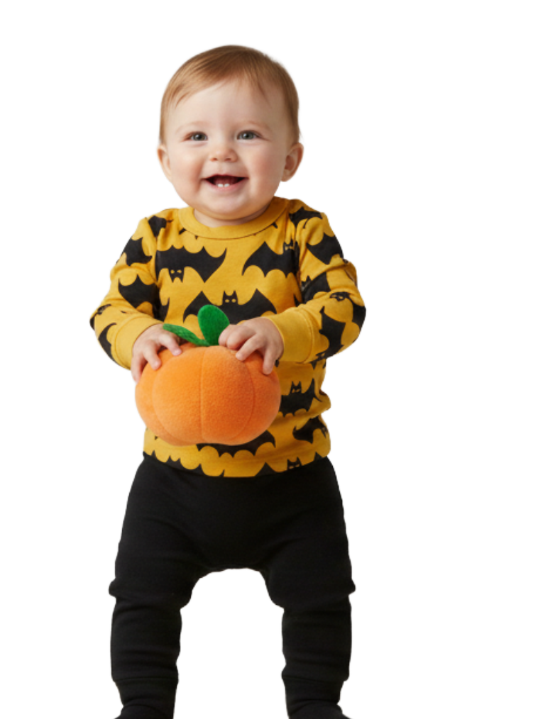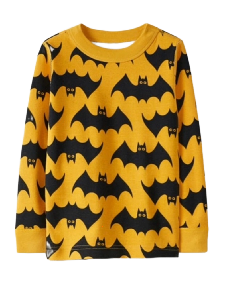 Kid's Halloween Long John Printed Top in Yellow Bats (Imperfect)