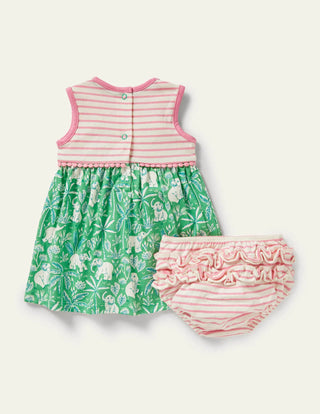 Baby Boden Sleeveless Jersey Dress and Knicker Set in Aloe Green Elephant Palm