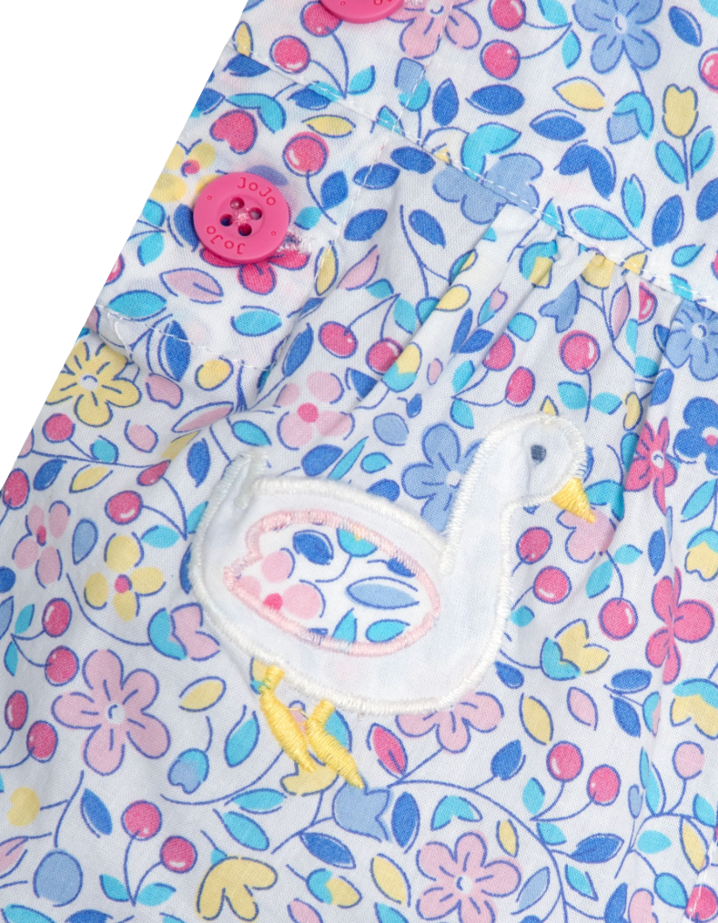 Spring has arrived, and these charming ditsy floral duck appliqué pocket dungarees are the perfect seasonal staple. Crafted from soft, breathable woven cotton, they offer the comfort your little one needs to play freely throughout the day. The thoughtful design features side buttons, shoulder fastenings, and leg poppers for effortless dressing and nappy changes. Adorable duck-shaped pockets add a delightful touch that captures the essence of warmer days ahead.
