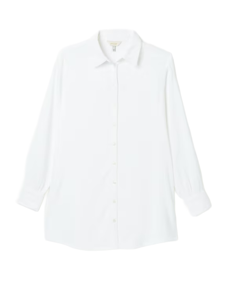 The Joules Women's Nell Button Through Shirt in white is crafted from soft, breathable cotton, offering all-day comfort and durability. Its classic button-through design ensures easy wear and a timeless look, making it an essential wardrobe staple. Ideal for layering or wearing solo, this shirt combines practicality with understated style suitable for everyday wear.