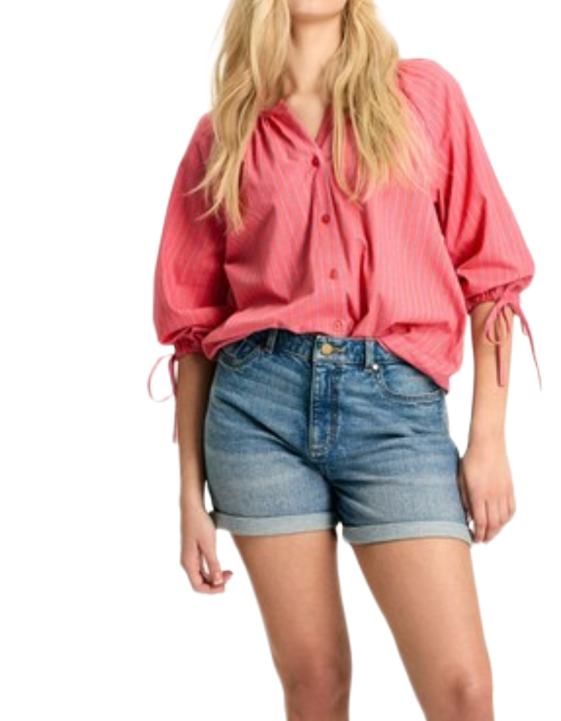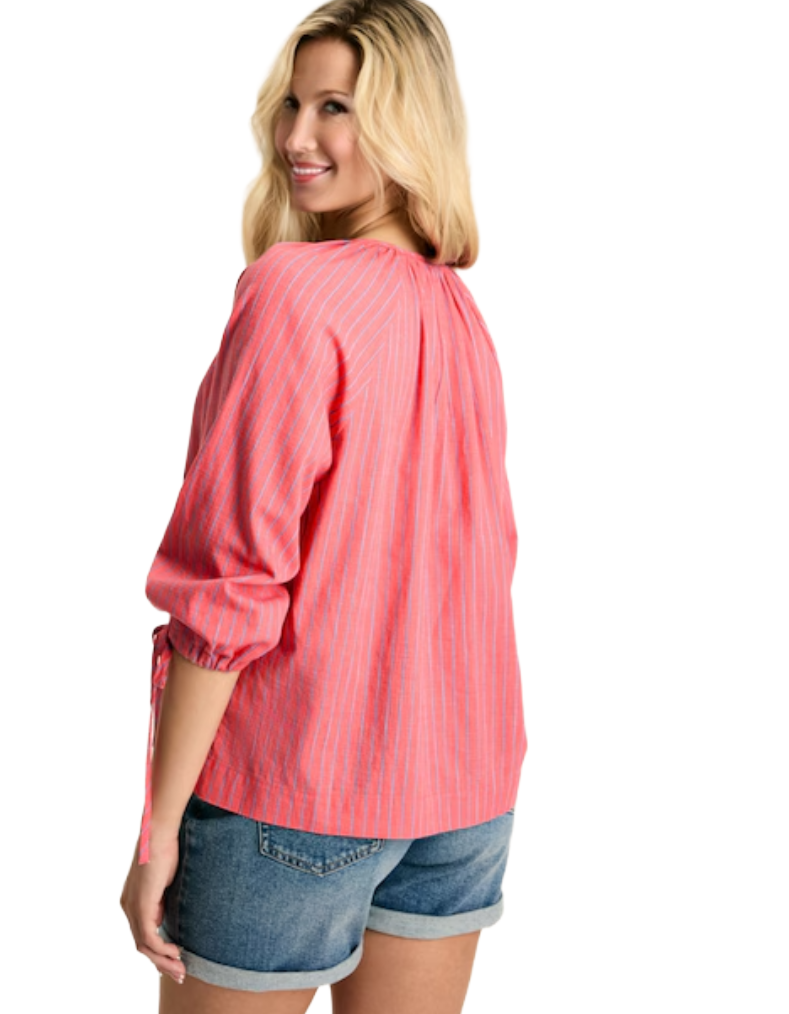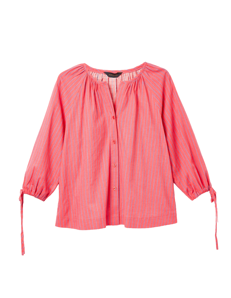 This Joules Blouse combines lightweight cotton fabric with a relaxed, boxy silhouette for effortless summer comfort. Its 3/4 length sleeves feature elasticated cuffs and delicate fabric ties, adding subtle detail and ease of movement. Ideal for pairing with denim and sandals, this blouse offers a refined yet casual look perfect for warm-weather wear.