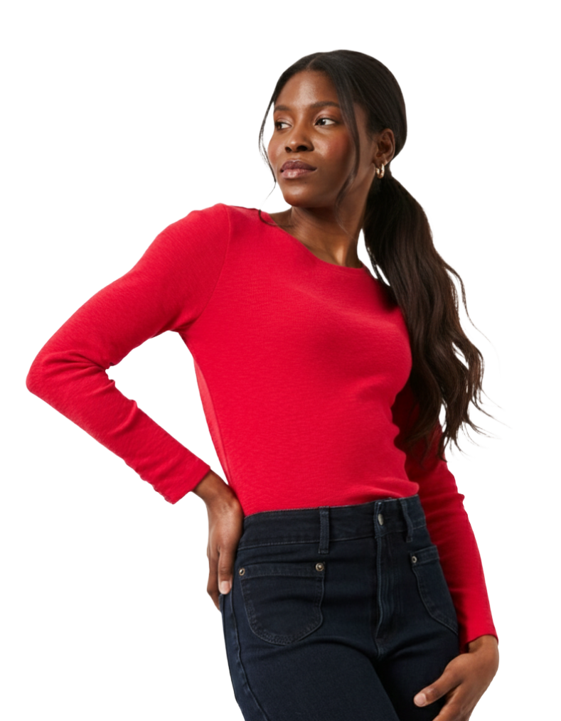 The Callie Long Sleeve Top in duck egg Red is a refined essential for modern wardrobes. Its soft, muted tone works seamlessly across seasons, pairing effortlessly with neutrals or bolder pieces alike. Built for comfort and versatility, this top transitions from casual daywear to polished evening looks with minimal effort. A timeless investment piece that anchors your everyday style with understated sophistication.