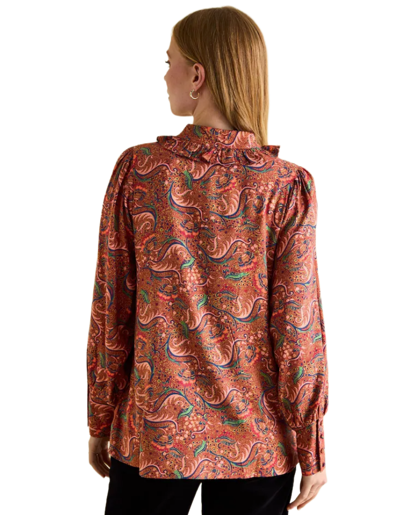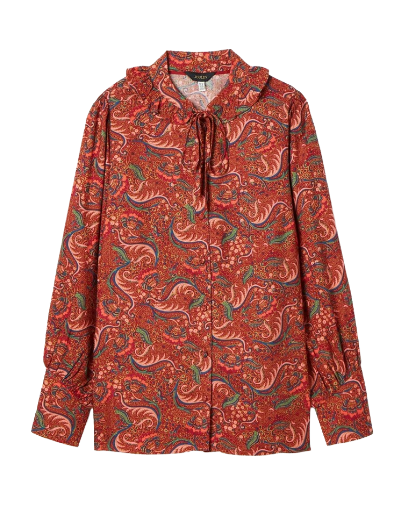 Elevate your wardrobe with this sophisticated Harper Paisley Pussybow Tie Blouse. Crafted in a rich red hue, the intricate paisley pattern adds visual depth and timeless elegance to any ensemble. The signature pussybow tie at the neckline creates a refined, polished silhouette perfect for both professional settings and elevated casual occasions. Quality construction ensures lasting wear and comfort throughout your day.