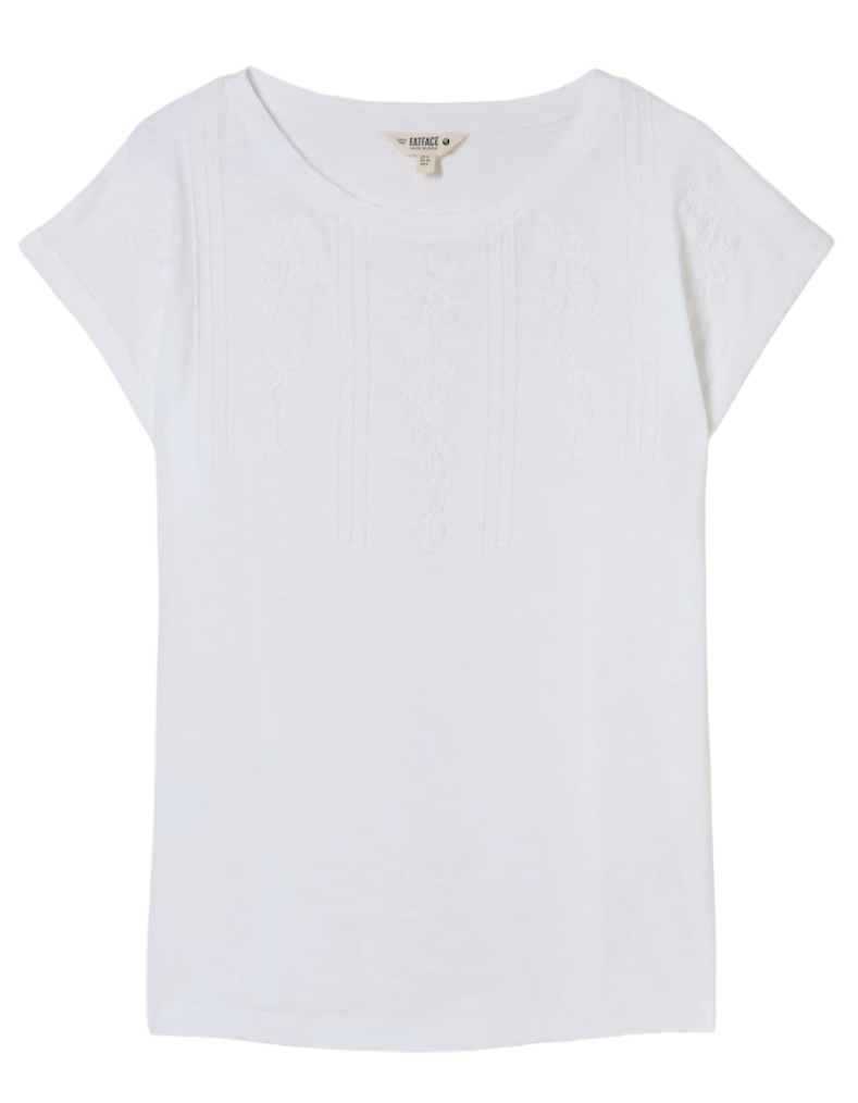 Introducing the Ivy embroidered t-shirt—a wardrobe essential crafted from 100% cotton for uncompromising comfort and breathability. The carefully placed embroidery detailing elevates this piece beyond the ordinary, adding subtle texture and visual interest that works effortlessly across multiple styling options. Whether paired with linen for understated elegance or tucked into denim for weekend ease, this versatile tee delivers both quality construction and timeless appeal. A refined choice for those who appreciate thoughtful design in their everyday wear.
