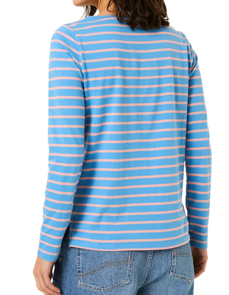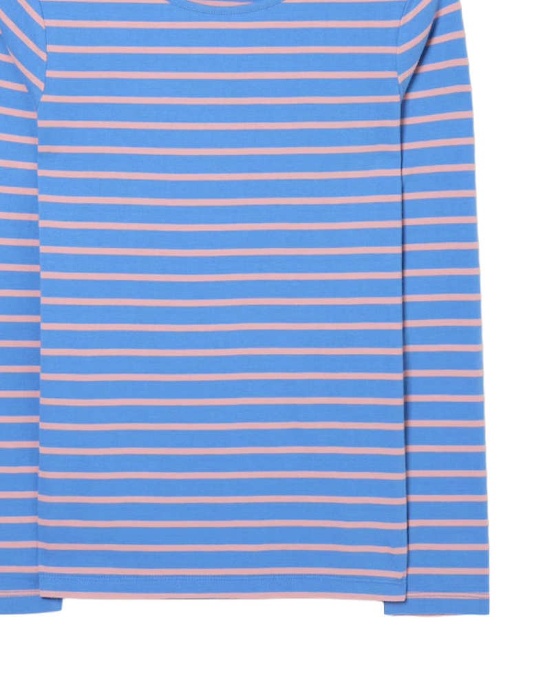 The Breton stripe is a timeless classic that transcends seasons and trends. This long-sleeve iteration combines the iconic horizontal stripes with breathable 100% cotton, making it an essential layering piece for any wardrobe. The lightweight fabric ensures comfort during warmer months whilst the structured weave maintains its shape wash after wash. Versatile enough to pair with denim, skirts, or tailored trousers, this multi-coloured design works effortlessly across countless outfits. The imperfect finish adds character and authenticity to this wardrobe staple.