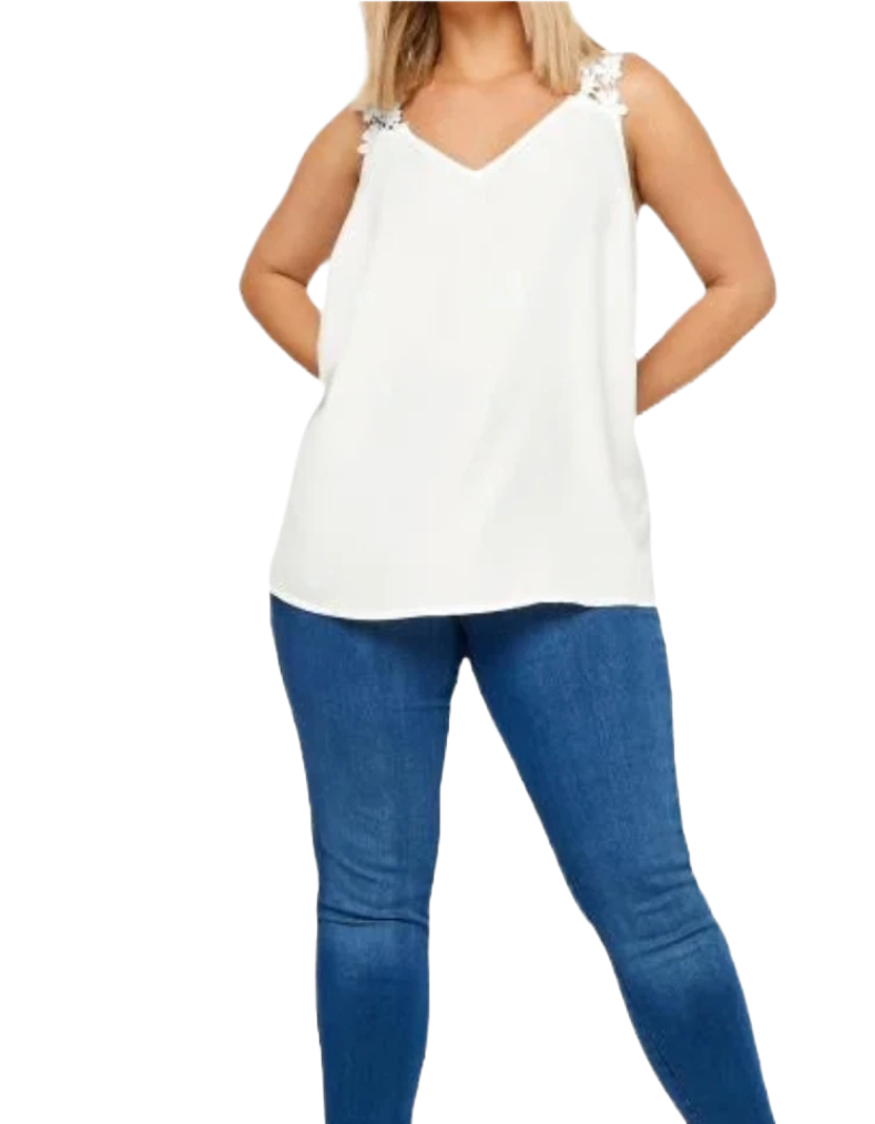 This plus-size sleeveless cami is crafted from soft woven polyester, offering both comfort and breathability. Its flattering V-neckline is enhanced with delicate floral trim, adding a subtle feminine touch. Easy to care for, this versatile piece pairs effortlessly with shorts and sandals, making it an essential addition to your summer wardrobe. Designed to provide a comfortable fit while maintaining style, it’s ideal for warm weather layering. Please note this item is sold as imperfect, offering excellent value without compromising on style.