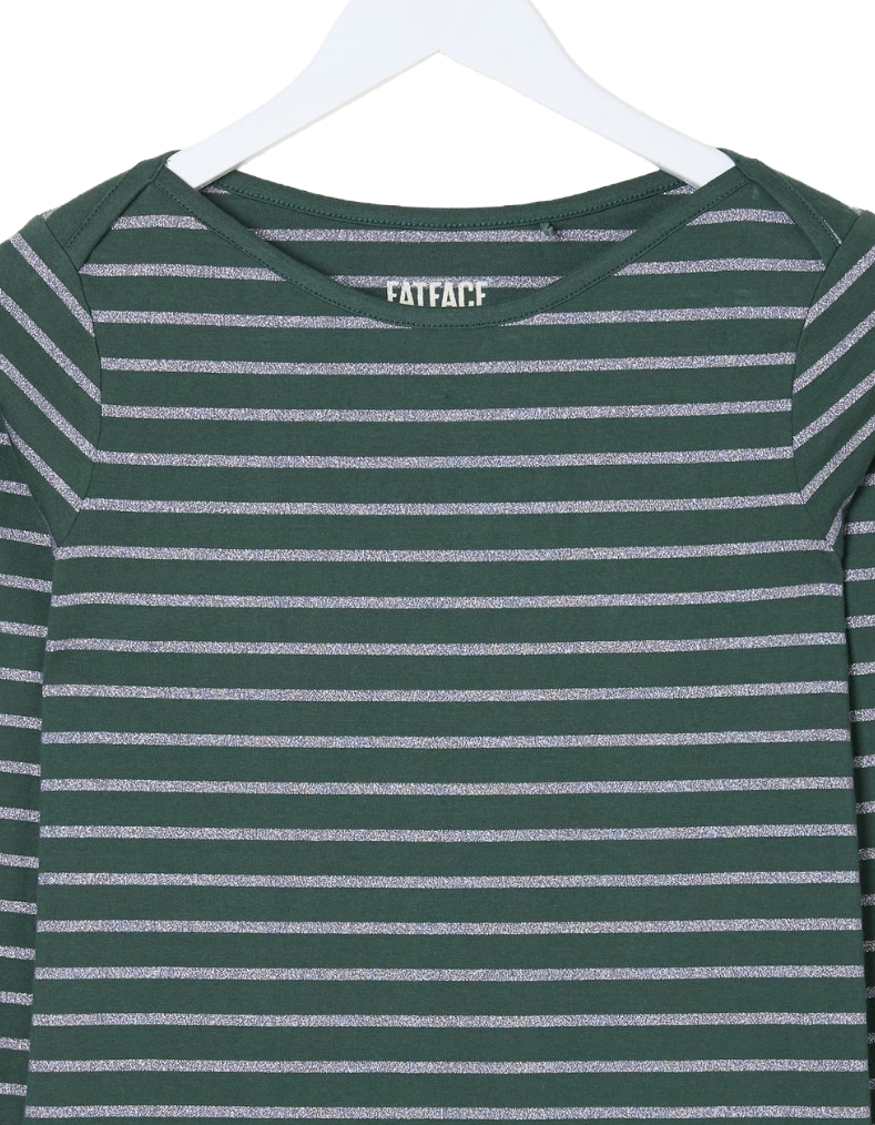 The Women's Sparkle Breton T-Shirt in Dark Teal redefines a timeless wardrobe staple with subtle metallic stripe detailing, adding a refined shimmer to any outfit. Crafted from supersoft cotton blended with elastane, it ensures exceptional comfort and gentle stretch for a flattering fit. This elevated classic combines enduring style with modern sophistication, making it an essential piece for versatile and effortless dressing.